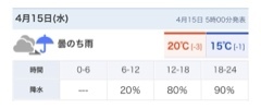 曇りのち雨 最高気温 20°c