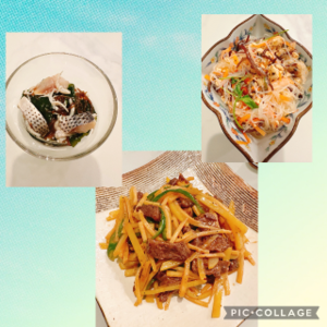 昨日は小肌とワカメの酢の物、ヤムウンセン、ジャガイモ入り青椒肉絲を作りました。