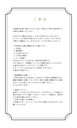 御新規様は新規専用LINEより予約賜ります