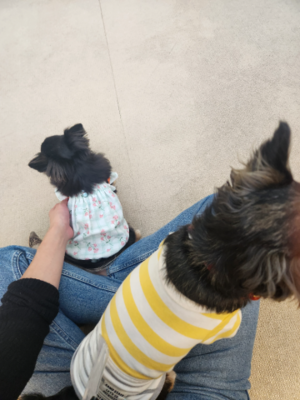 よそのチワワちゃんをなでなでしてたらウチの娘がダッシュしてきてお膝に飛び乗ってきて