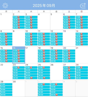 9月の残り枠と10月の予定です