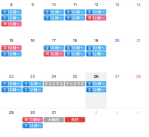 お部屋のない日や時間帯があります!