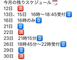 こんばんは。連休を頂いております。泡姫の休日というものは非常に忙しいものでして(-。-;心身共にメンテナンス中となります故?姫予約申請以外のお問い合わせへのお返事は追いつかない為22日以降のお返事になります?何卒ご了承くださいませ??♀?