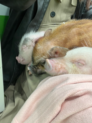 私の膝の上で寝る3匹のコブタ?