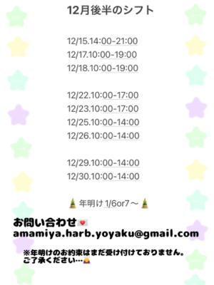25日【クリスマス】?は14:00のみ空いています♪