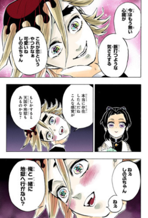 なんと?しのぶ?の毒に殺られて、伊之助?とカナヨでトドメをさされるんですね(??)!!