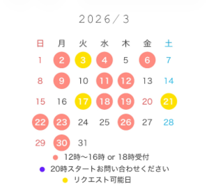 (20時のお枠は直接のご連絡のみ)