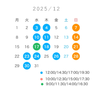 ※出勤時間外ご希望の方は前日までご連絡ください