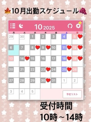 次回は10月30日の出勤予定です☆