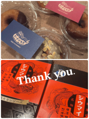 今日の差し入れはドーナツ?と焼売??