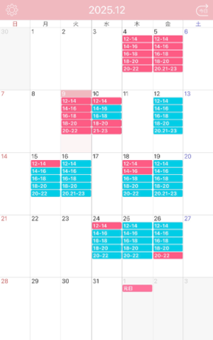 【12月の出勤予定】
