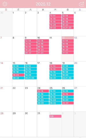 ・12/16(火) 12時~/14時~/16時~/18時~/20時、21時~