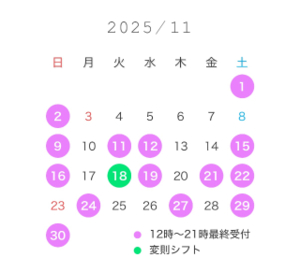 あ!そういえば11月のシフト少し変更出ています!