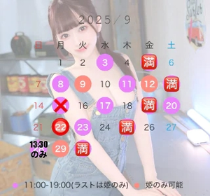 週末や祝日は女の子の出勤も多くお部屋無くなりやすいので早めにご連絡いただけると助かります