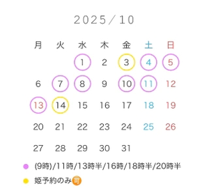 9:00出勤やお休みの日の出勤も姫予約でしたら能なので、お気軽にご相談ください