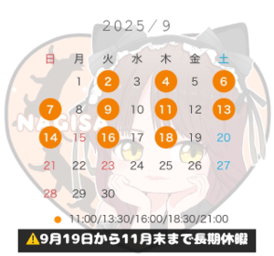 9月はもちろんまだまだ8月も受付してますのでお待ちしてます