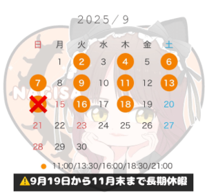 一昨日の休暇明けの出勤1枠のみと忙しくさせて頂きありがとうございました