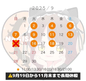 9月の予定のお知らせです