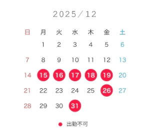 赤印は12月の受付不可日になります