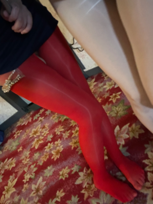 不思議な紅白のタイツを履いたよう