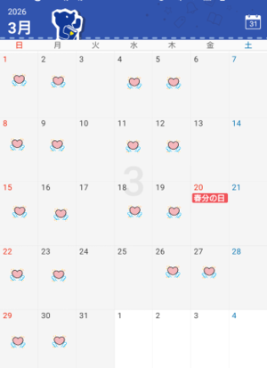 ハートマークの日が出勤です![]()