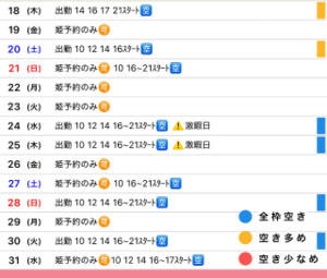 女の子の予約が空いていても