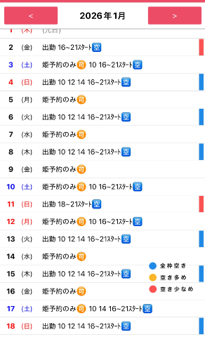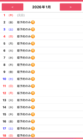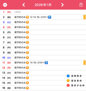 ??1月の姫予約状況です