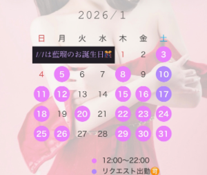 ちなみに1/14(水)予定があいてリクエスト出勤できるのでお誘いまってます???