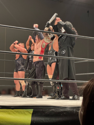 そして、最後にヨシ・タツ選手が出てきて、まさかのリングに推し3人という激アツな展開に![]()