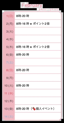 2月前半のシフトが決まりました。