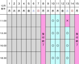 ※1ヶ月以上先は仮予約の状態です