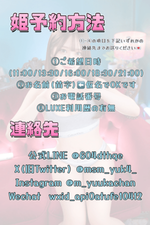 お店に直接のネット予約やお電話でのお誘いも当たり前に嬉しいのですが、ゆうかに直接ご連絡いただけると特典が選べますので是非✨️