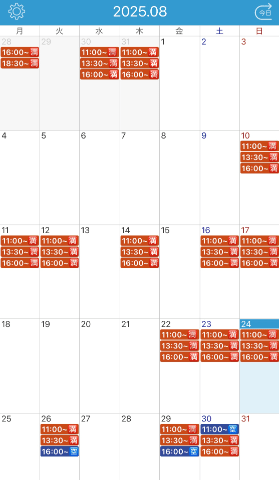 8/30(土)は残り11時〜1枠のみ