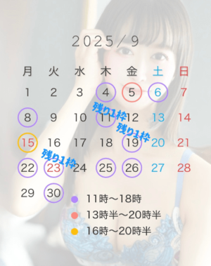 9/11(木)16時〜1枠のみ