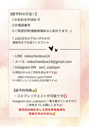 ?コスプレリクエスト【姫予約様限定】はご予約の2日前までにお願いいたします??♀?