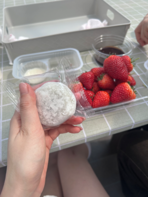 練乳にチョコソース、大福と