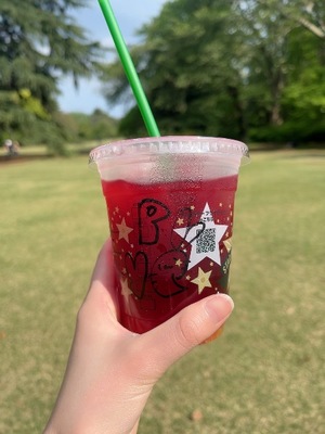 スタバでは可愛い色の飲み物を探していたらお気遣いで店員さんがカップに可愛いお絵描きをしてくださって!