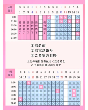 優先ご予約は時間受付中です