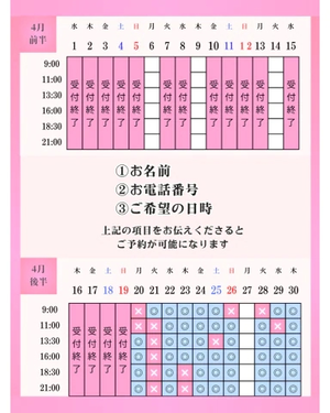 優先ご予約は時間受付中です