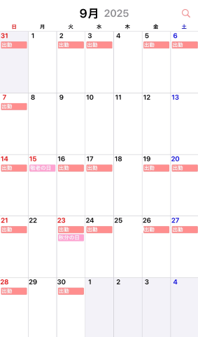 9月のシフト