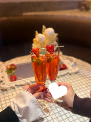 お酒ではなくイチゴソーダ、可愛いでしょ?