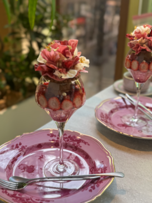 奥にチラッと見える白苺のパフェ?