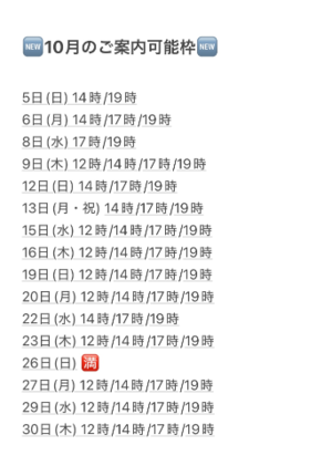10月最初の出勤は5日(日)になります??