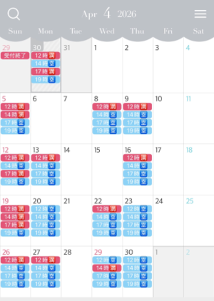 (例:3月1日(日)12時から1枠)