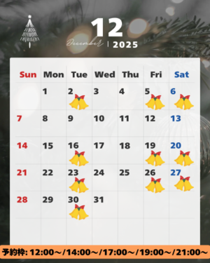 12月はお部屋が埋まりやすいため、早めにお問い合わせいただけると嬉しいです??♀??