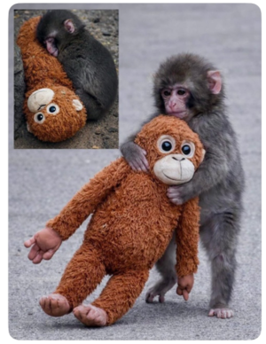 生まれてすぐに母猿に育児放棄されて、ぬいぐるみをお母さん代わりにひとりぼっちで群れに馴染もうと頑張ってる健気なパンチくん?