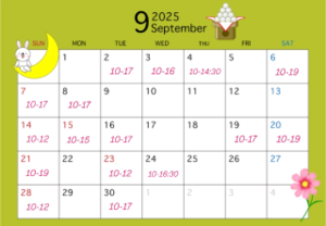 9/9以降は5日ほどお休みなるので