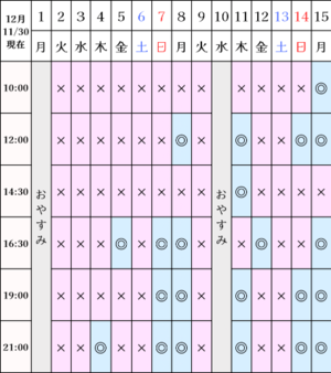 ?空き状況(11/30)