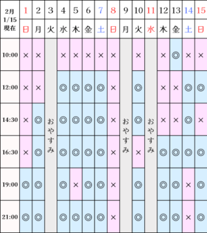 ?空き状況(1/15現在)