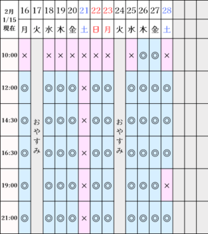 今日の空き枠